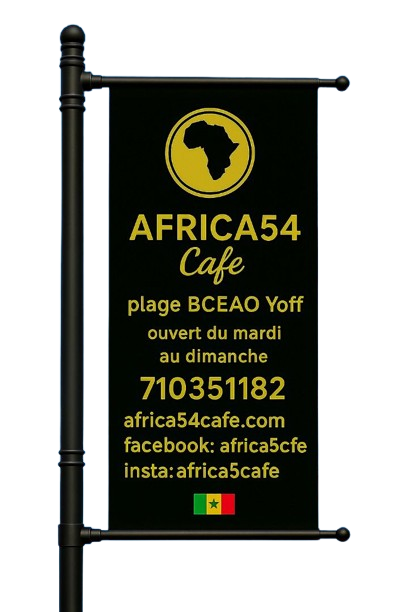 Welcome to Africa54 Cafe. We are located at Plage BCEAO Yoff in Dakar, Senegal. We serve Seafood, fish, grilled meat (Beef & Chicken) and refreshments (Juice & Sodas).